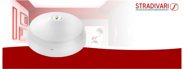 CBE family comprehends red and white ceiling mount VAD Beacon that ensure a large coverage volume while consuming low power. The use of a specifc spherical lens allows CBE beacons to obtain an EN54 part 23 C class 3x7,5 coverage using a unique LED and so decreasing the total amount of current sunk. The low-profle design that protrudes only 45mm from the ceiling makes the device really unobtrusive and non-invasive.